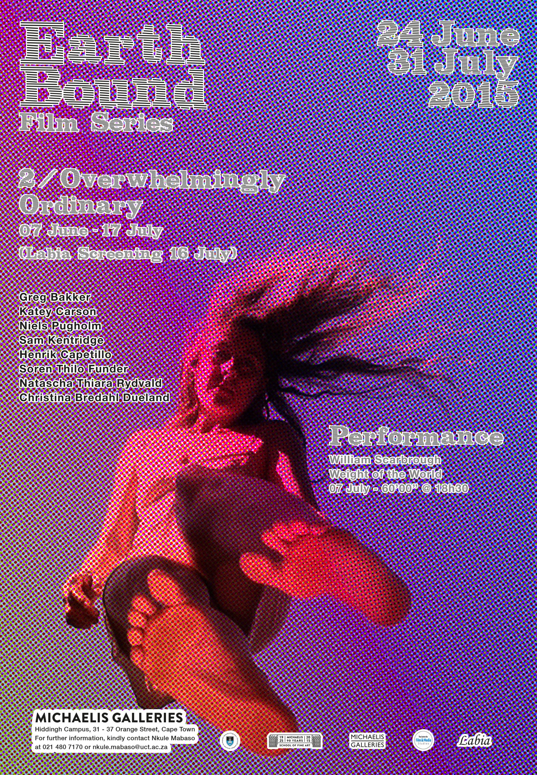 The Michaelis Galleries present, through a series of film installations, performance, exhibition, and screenings; a high stakes mix of works that explore the boundaries of the human/human/ nature relationships. In order to reframe the mediated relationships between human and the nonhuman, as a site of ethical disturbance and critique vital and aesthetic questions in a manner that brings ethical relatedness to the fore through; the series demands engagement with ontological questions of being and teleological questions of where humanity should be going in our relationship to the planet and consider the contemporary situation as we ourselves are involved in it. In presenting various possibilities and perspective the series avoids over identification with any strict ‘moralism’ and initiates exploration beyond the tired liberal mores of political correctness, pity and empathy.
