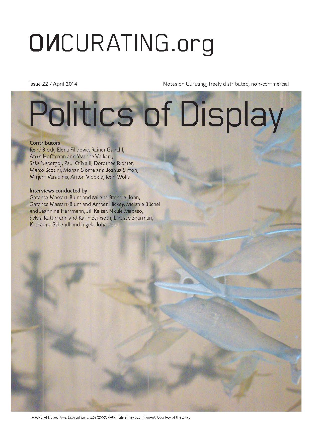 This issue of OnCurating consists of a variety of texts and interviews, which were developed out of interviews from participants connected to the Postgraduate programme in Curating (www.curating.org). Many of the authors and interviewees gave lectures and participated in the programme over the last four years, adding to the dialogue in the postgraduate programme, as well as other curators in the field.